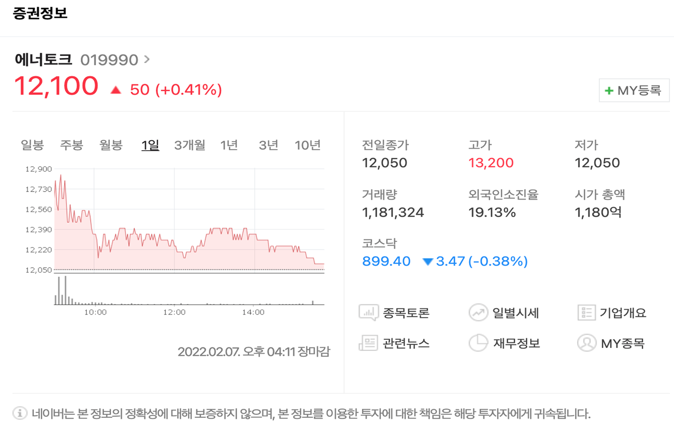 마지막 기업인 에너토크는 중소기업으로서 코스닥에 상장되어있는 기업으로 업종은 탭 / 밸브 및 유사장치를 제조하고 있습니다.