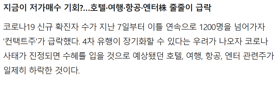이 상황을 빗대면 엔터 관련주는 코로나로 인해서 주가가 많이 하락한 상황이기에 매수 움직임이 일어나고 있습니다.