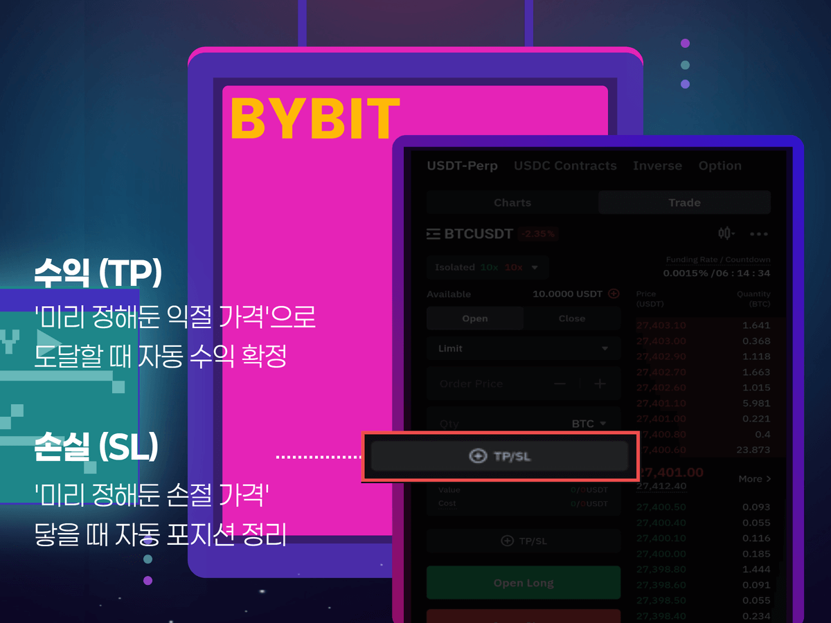 수익은 이익을 확정 짓고 자동으로 포지션을 정리하는 가격이며, 손절은 손실이 커지기 전에 미리 포지션을 끊어내는 가격입니다.