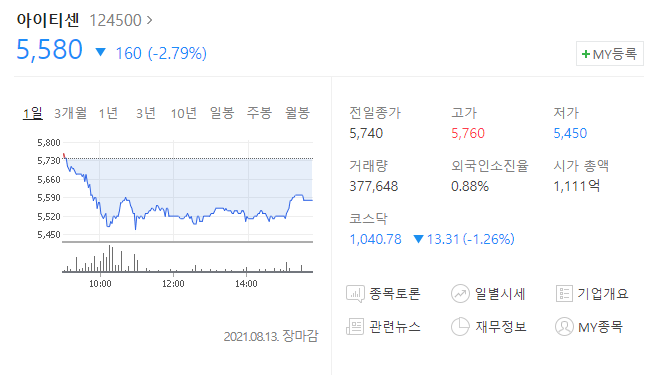 아이티센 주가는 2020년 6월 12일 블록체인 기술 중에서 신원확인의 대표적인 모바일 공무원증 구축사업자로 선정됐다는 이유로 7000원까지 큰 폭으로 올랐지만 결국 매도세를 이기지 못하고 5610원에 마감한바 있습니다.