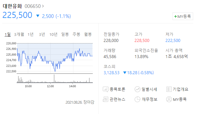 석유 관련주 대한유화는 석유 및 석유류 제품 정제와 생산 판매를 진행하고 있습니다.