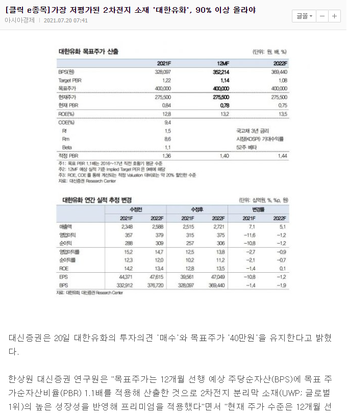 대한유화는 2차전지가 먹여살렸다라고 말하는 것처럼 위의 두가지 종목을 보기보다는 대한유화 같이 매출처가 많은 기업에 투자하는 것이 보다 유리하겠습니다.