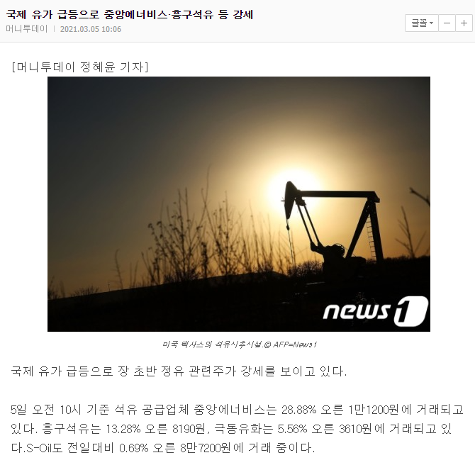오늘은 석유 관련주인 흥구석유 한국석유 대한유화의 전망에 대해서 알아보도록 하겠습니다.