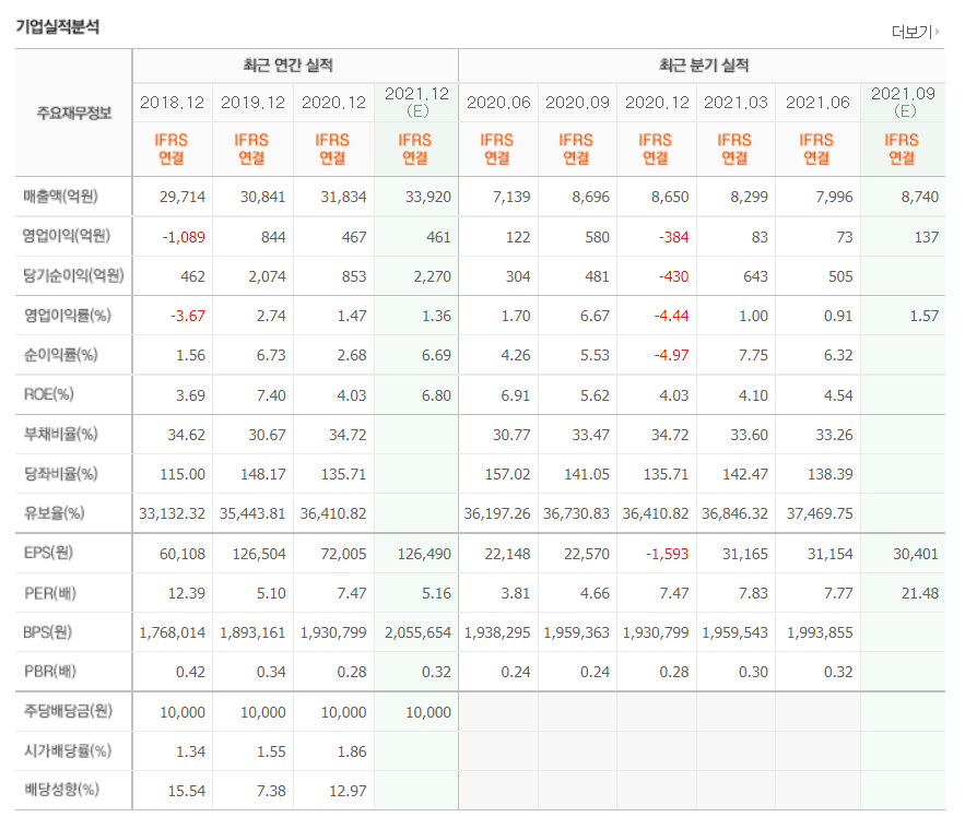 다만 원가율의 상승으로 영업이익이 전년대비 하락한 것을 눈으로 보실 수 있으며 외환관련 손실도 한몫한 것으로 볼 수 있습니다.