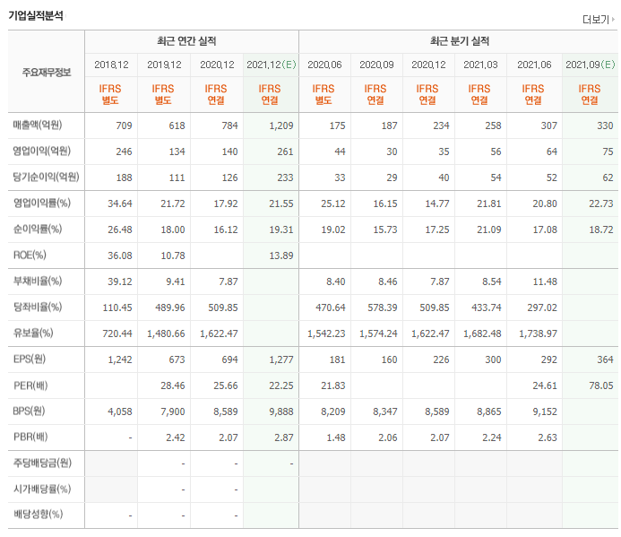 덕산테코피아 재무제표는 흑자를 기록하고 있으며 작년 784억원의 매출을 올린바 있습니다. 올해 컨센서스에 따르면 매출액은 1200여억원대를 기록할것으로 분석이 되고 있는데요.