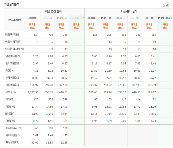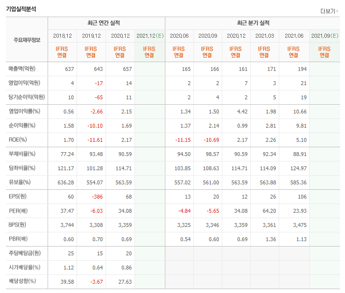 매출액은 3년 연속 상승세인 것은 맞습니다. 올해 748억원으로 지난해보다 44억원이 증가하였으니까요, 확산세가 좀처럼 꺾이지 않는 상황이고 워낙 뉴스도 없이 조용하게 운영하다보니 3분기 실적에 따라 주가 반등이 있을 것 같지만 그닥 매력적이지 않은게 문제입니다.