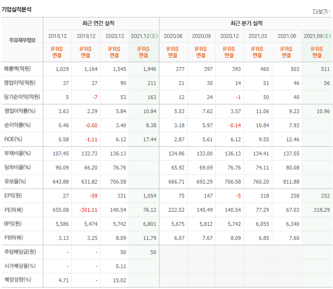 게다가 2차전지 사업의 일환 중 실리콘의 판매로 올해 컨센서스는 211억의 영업이익을 낸다고 본바 현재 주가는 저평가 수준이다라고 판단해볼 수 있습니다.