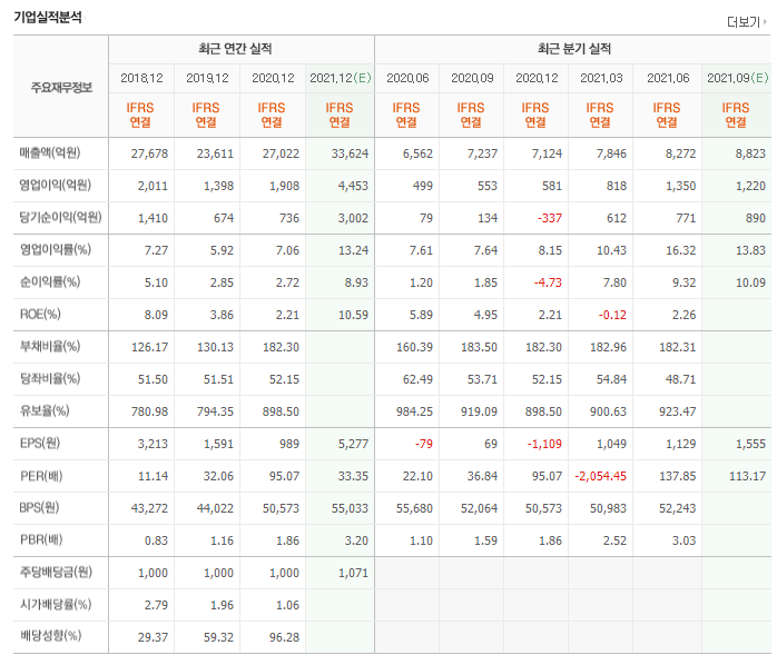 SKC 재무제표는 작년 기준 2조 7022억원 매출액에 영업이익 1908억원대를 기록하며 매우 양호한 실적을 보여주고 있는 것을 볼 수 있습니다.