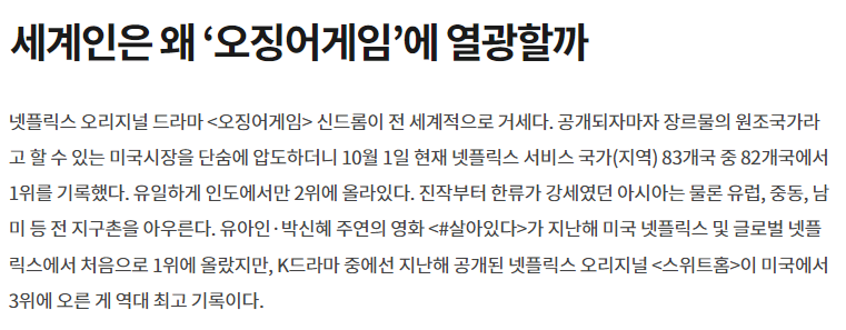 OTT 대표 주자인 넷플릭스에서는 다양한 드라마가 런칭 되었는데 그 중에서 오징어게임은 해외에서도 폭발적인 반응을 보여주며 한창 이슈가 되었습니다.
