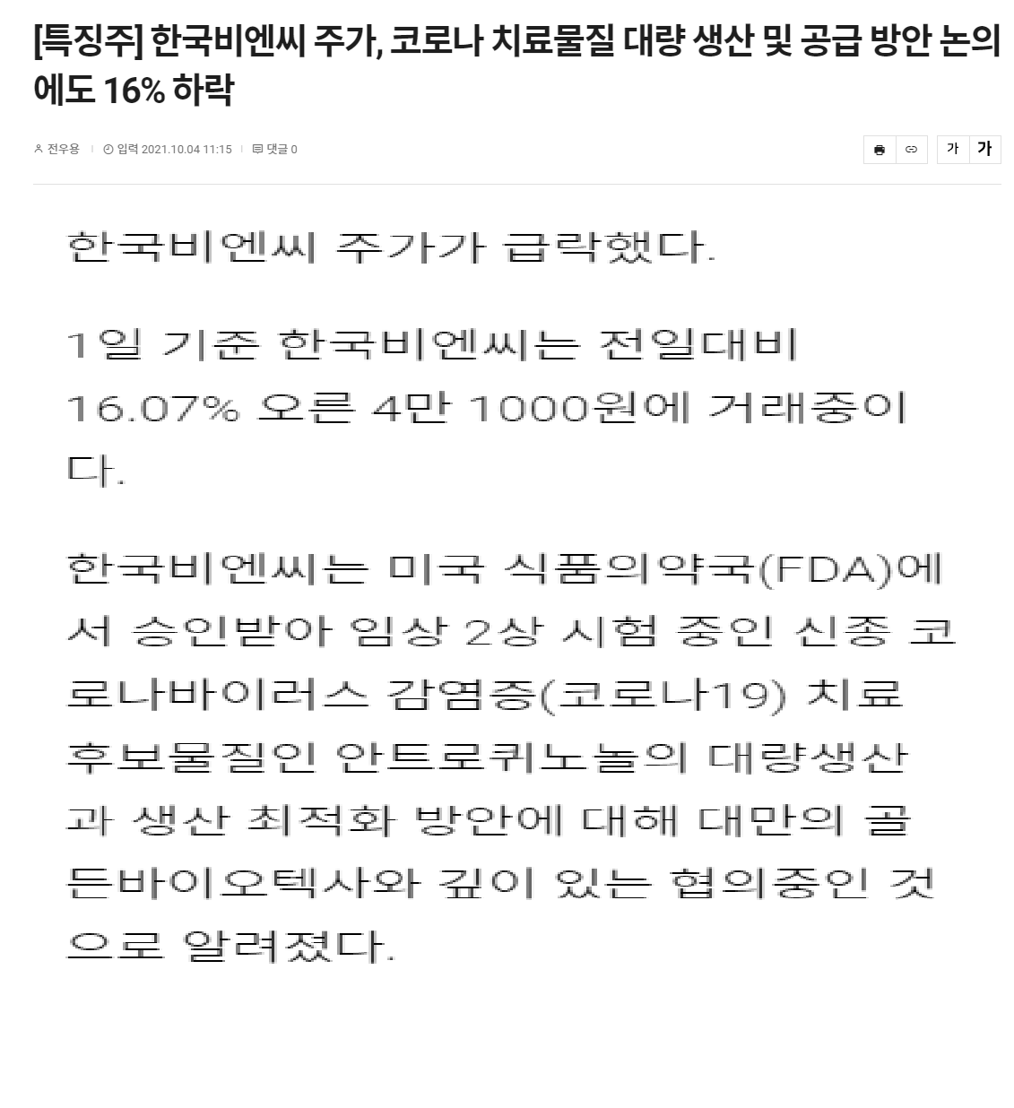 한국비엔씨는 먹는 치료제를 개발하여 분명 주목을 받아야 하는 상황이지만 미국의 증시폭락이 예정되어 있단 소식에 섣불리 들어오지 못하고 있는 것은 사실입니다.