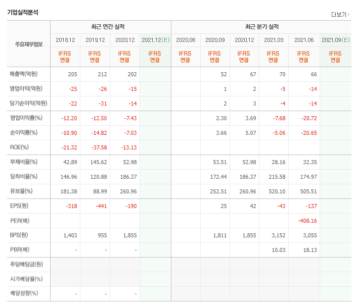 현재도 끊임없이 VR기기에 대한 기사와 수소생산에 필요한 2차전지 부품에 대한 재료가 있으나 재무구조 특성상 현재는 들어가는 것을 보류하는걸 권합니다.