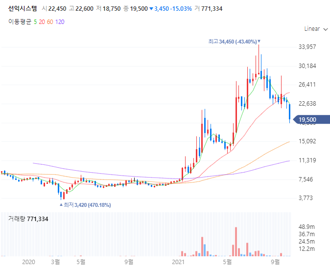 이후 5월 28일 메타버스 산업 성장세에 23850원까지 상승 후 7월 23일에는 34450원까지 상승 했습니다.
