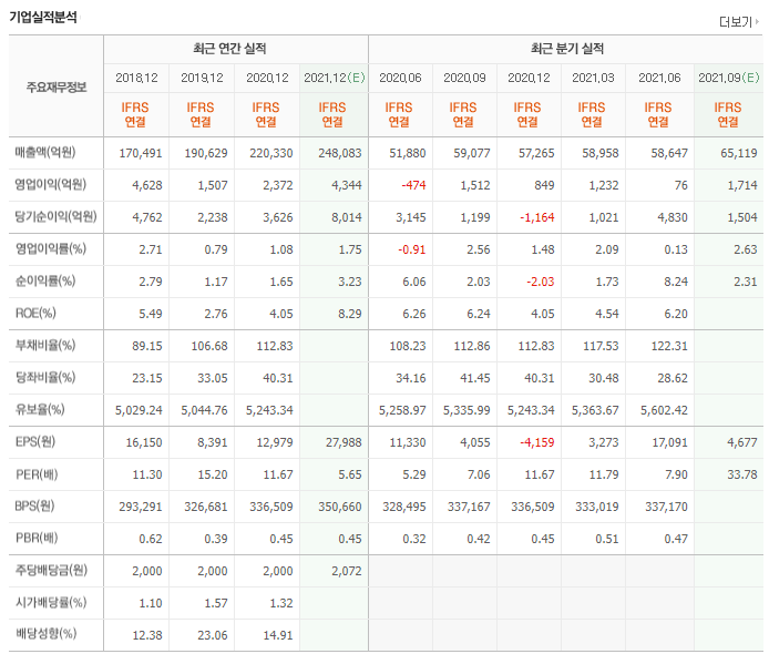 2분기 영업이익을 76억원으로 코로나 이후로 첫 매출 흑자로 돌아섰고 이후에도 흑자세는 계속 되어 3분기 역시 컨센서스는 영업이익만 1500여억원에 달할 것으로 보고 있습니다.