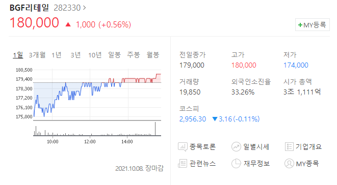 BGF리테일 주가는 올해 1월 29일 네이버와의 협력 기대감에 이날 하루만 11.84% 오른 17만원으로 종가를 한바 있으며 이후로도 매수와 매도와 보합되며 끊임없는 투쟁을 벌이는 듯한 모습인데요