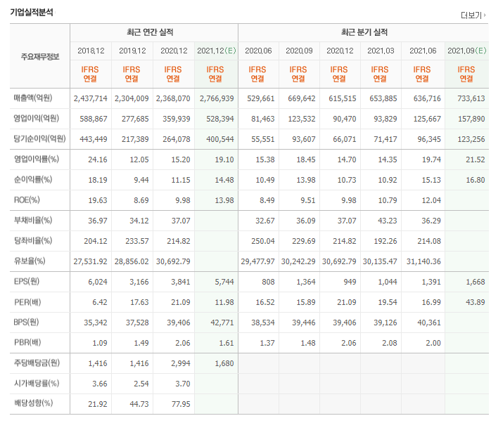 작년 236조 8070억원의 매출을 벌어들였고 영업이익만 35조 9939억원이었는데 오히려 주가가 10만을 넘어서지 못하는 것이 이상할 정도의 수준이라 생각할 수도 있습니다.