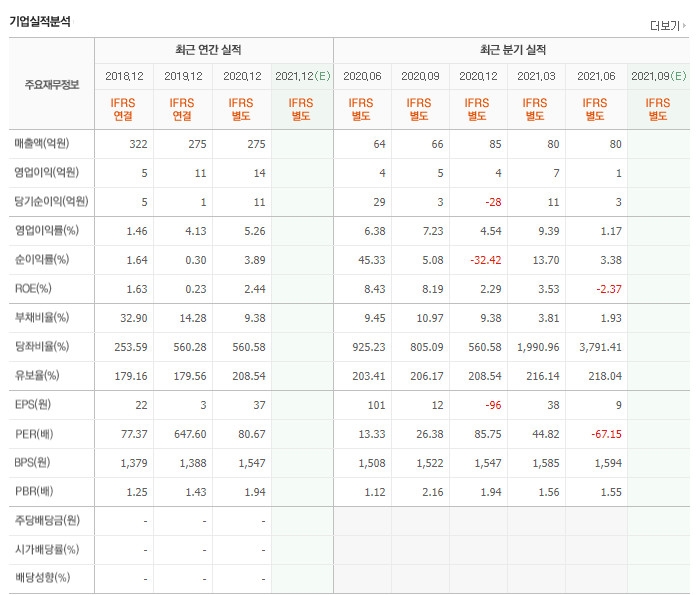 티사이언티픽 재무제표는 현 주가를 잘 반영하고 있는데 작년 95억원에 7억원의 영업이익을 낸바 있으며 올해 역시 동일하거나 비슷한 금액으로 마감을 할 가능성이 높은데요