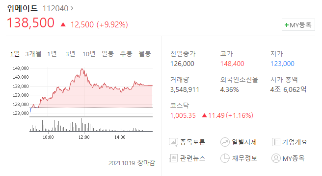 NFT 관련주 위메이드는 온라인 게임 개발과 모바일 게임 유통 및 판매를 주업으로 하고 있으며 미르의전설 2-3 창천 미르4 등의 게임이 대표작이고 관련주인 이유는 블록체인과 메타버스 신사업에도 뛰어들고 있기 때문입니다.